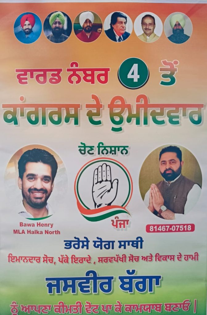 Punjab ujala news : ਵਾਰਡ ਨੰਬਰ 4 ਤੋਂ ਕਾਂਗਰਸ ਪਾਰਟੀ ਦੇ ਉਮੀਦਵਾਰ ਜਸਵੀਰ ਬੱਗਾ ਨੇ ਚੁਣਾਵ ਪ੍ਰਚਾਰ ਵਿੱਚ ਪਕੜ ਕਿੱਤੀ ਮਜਬੂਤ, ਵਿਰੋਧੀ ਹੋਏ ਹੈਰਾਨ ਕੀ ਬੈਠਕਾਂ ਵਿੱਚ ਇਨੀ ਭੀੜ ਕਿੱਦਾਂ ਜੁੱਟ ਗਈ, ਵਾਰਡ ਦੇ ਲੋਕਾਂ ਨੇ ਮਿਲ ਕੇ ਜਸਵੀਰ ਬੱਗਾ ਦੇ ਨਾਲ ਡੋਰ ਟੂ ਡੋਰ ਕੀਤਾ ਅਤੇ ਉਹਨਾਂ ਨੂੰ ਯਕੀਨ ਦਵਾਇਆ ਕੀ ਅਸੀਂ ਇੱਕ ਇਮਾਨਦਾਰ ਬੇਦਾਗ ਲੀਡਰ ਨੂੰ ਹੀ ਬੋਟ ਪਾਵਾਂਗੇ, ਜਸਵੀਰ ਬੱਗਾ ਨੇ ਸਭ ਦਾ ਧੰਨਵਾਦ ਕਰਦੇ ਹੋਏ ਕਿਆ ਮੈਂ ਜਿੱਤ ਕੇ ਆਪਣੇ ਵਾੜ ਦੇ ਸਾਰੇ ਕੰਮਾਂ ਨੂੰ ਪਹਿਲ ਦੇ ਆਧਾਰ ਤੇ ਕਰਾਂਗਾ ਅਤੇ ਲੋਕਾਂ ਦੀਆਂ ਸਮੱਸਿਆਵਾਂ ਨੂੰ ਸੁਨ ਕੇ ਉਹਨਾਂ ਦਾ ਹੱਲ ਕਰਾਂਗਾ ਜੋ ਕਿਹਾ ਉਹ ਜਰੂਰ ਕਰਾਂਗਾ ਤੁਹਾਡੀ ਇੱਕ ਇੱਕ ਬੋਟ ਮੇਰੇ ਲਈ ਬਹੁਤ ਜਰੂਰੀ ਹੈ ਮੈਂ ਸਾਰੇ ਵਾਰਡ ਨਿਵਾਸੀਆਂ ਨੂੰ ਅਪੀਲ ਕਰਦਾ ਹਾਂ 21 ਦਸੰਬਰ ਨੂੰ ਕਾਂਗਰਸ ਦੇ ਬਟਨ ਨੂੰ ਬੋਟ ਪਾ ਕੇ ਕਾਮਯਾਬ ਬਣਾਓ, ਤਾਂ ਕਿ ਮੈਂ ਆਪਣੇ ਵਾਰਡ ਦੇ ਲੋਕਾਂ ਦੇ ਹੱਕ ਲਈ ਲੜ ਸਕਾ.