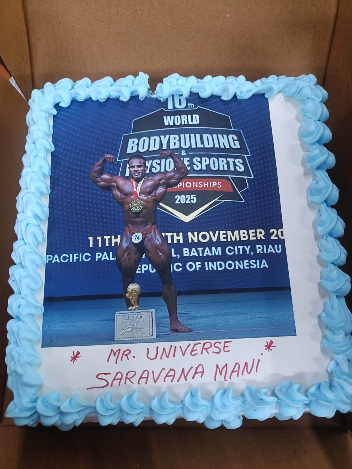 Punjab ujala news, लुधियाना : इंडोनेशिया में आयोजित वर्ल्ड मिस्टर यूनिवर्स प्रतियोगिता में 16वें विश्व चैंपियन बने सरवन मणि को ₹6 लाख के नकद पुरस्कार से सम्मानित किया गया। और टीम इंडिया को टीम चैंपियनशिप का खिताब दिया गया। इस उपलब्धि का जश्न मनाते हुए, आईबीबीएफ(IBBF) और पंजाबी एमेच्योर बॉडीबिल्डिंग एसोसिएशन के अध्यक्ष नवनीत सिंह और महासचिव मोनू सभरवाल ने केक काट खुशियां मनाते हुए टीम इंडिया को वर्ल्ड चैंपियन खिताब मिलने पर बधाई देते हुए केक खिलाया और कहा कि 16वें ओवरऑल वर्ल्ड चैंपियन बने सर्वण मणि को बहुत बहुत बधाई दी और कहा कि एसा भारत में पहली बार हुआ है कि वर्ल्ड चैंपियन बनने पर किसी खिलाड़ी को नगद 6लाख रुपए कैश दिया गया । और मोनू सब्रवाल द्वारा इस खुशी के मौके पर आईबीबीएफ (IBBF) के प्रेसिडेंट स्वामी रमेश जी, पदम श्री प्रेमचंद डोगरा जी , महासचिव चेतन कटहारे का शुक्रियादा करते हुए कहा कि इन लोगों की वजह से ही हमारे इंडियन बॉडीबिल्डिंग फेडरेशन का पूरे विष्व में नाम हो रहा है । और इंडियन बॉडीबिल्डिंग उनके फसलों के कारण बुलंदियों को छू रही है ।